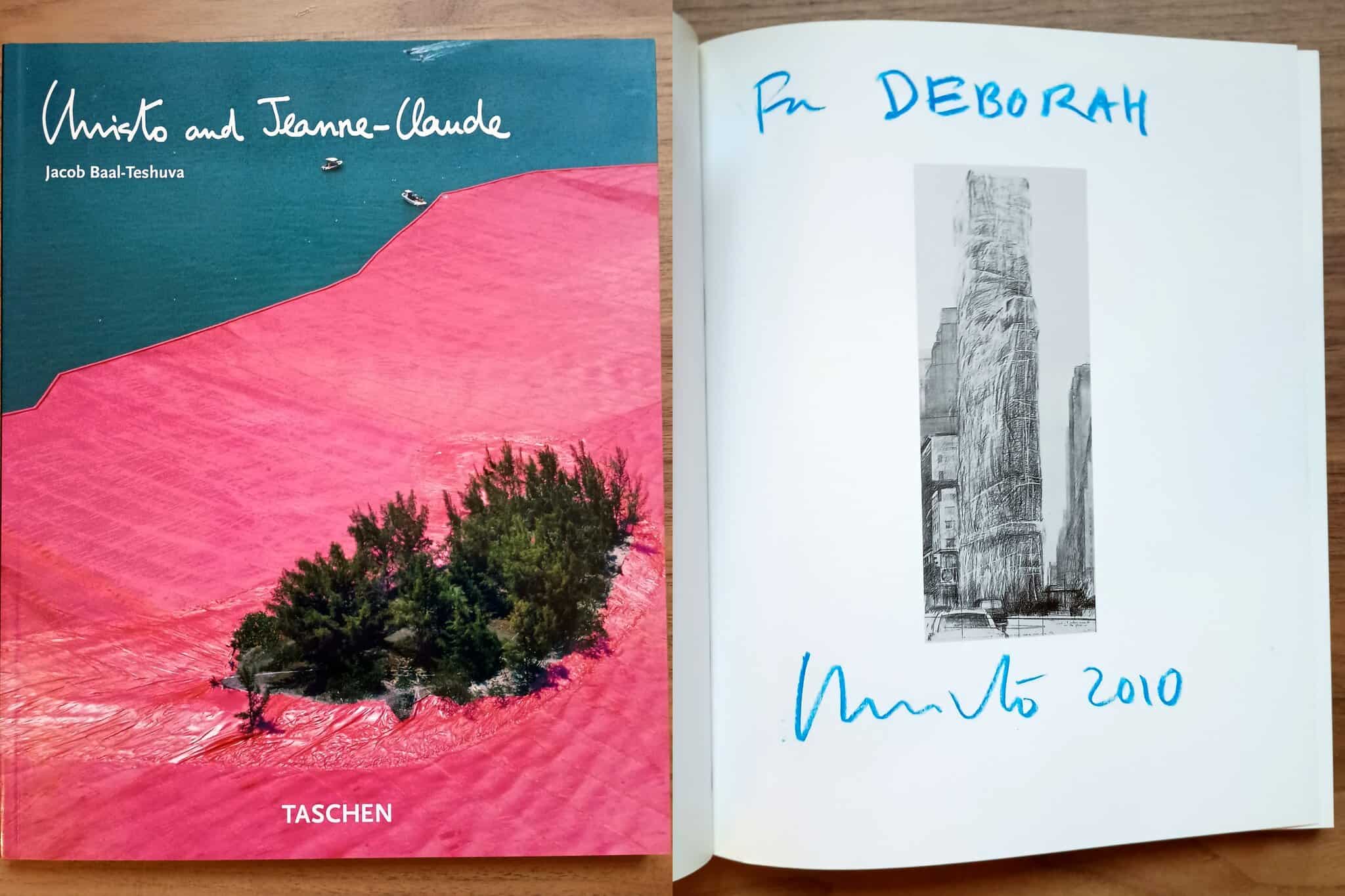 Despite the disorder, Christo sat patiently, signing everything placed before him with remarkable focus and generosity. The inscription, executed in his distinctive blue crayon, consists simply of his signature and the recipientโs name. I watched the book being signed, albeit from some distance, and was able to photograph Christo at the table as he worked his way through the stack in front of him, providing clear and reassuring provenance. Seeing the book disappear into the crowd and later re-emerge signed was a moment of quiet exhilaration. I was genuinely thrilled to bring home such a wonderful souvenir of a remarkable encounter.