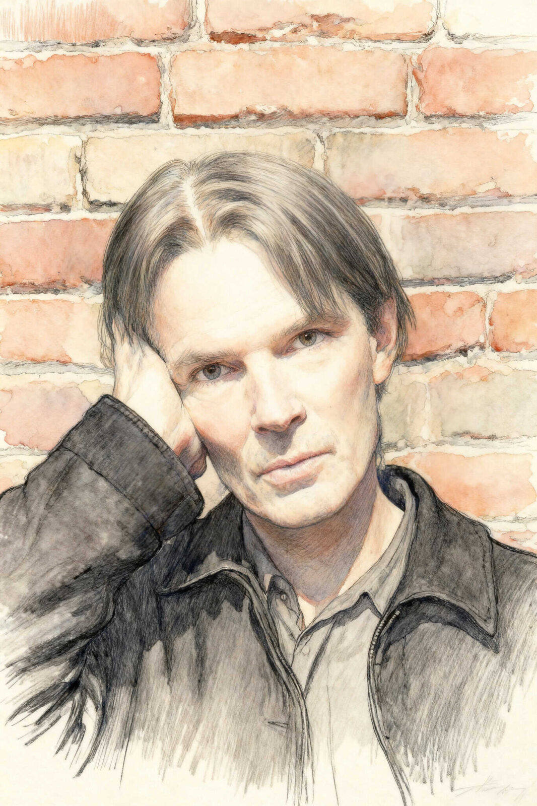 Illustration of Jim Carroll based on a photograph by Eric Thompson. Zerohourminuszero at en.wikipedia, Attribution, via Wikimedia Commons.